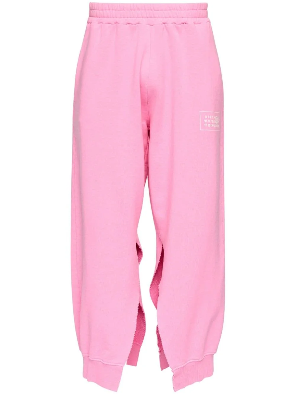 slit loose-fit track pants Highlights - Pink - Cotton - Signature numbers motif - Slit detailing - Elasticated waistband - Two side slit pockets Made in Italy Composition Cotton 100% Washing instructions Machine Wash