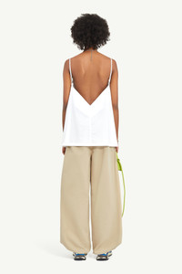Borrowing from 1990s minimalism, this MM6 top is made from soft cotton poplin to a clean-lined adjustable spaghetti strap silhouette. The style is also characterised by a square neck and exposed back. The brand’s discreet yet distinct signature, a horizontal line of white stitches, is also found on the back of the garment. Product Details Item ID S52NC0331S47294100 Composition: 100% cotton Pocket lining: 100% viscose-rayon Cotton poplin top Square neck Adjustable spaghetti straps Exposed back White stitch line at the back Regular fit Made in Italy Model is 176 cm tall and wears a size 42.
