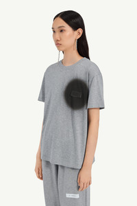 A classic cotton jersey T-shirt reworked with a bold spray-print effect. The graphic circle draws focus to the tonal numeric artwork, turning a simple dot into a sharp visual statement. Finished with MM6’s discreet white stitch line at the back. Product Details Item ID S52GC0364M20048856M Primary fabric: 100% cotton Cotton jersey Spray effect detail on front Short sleeves Round neck Made in Italy