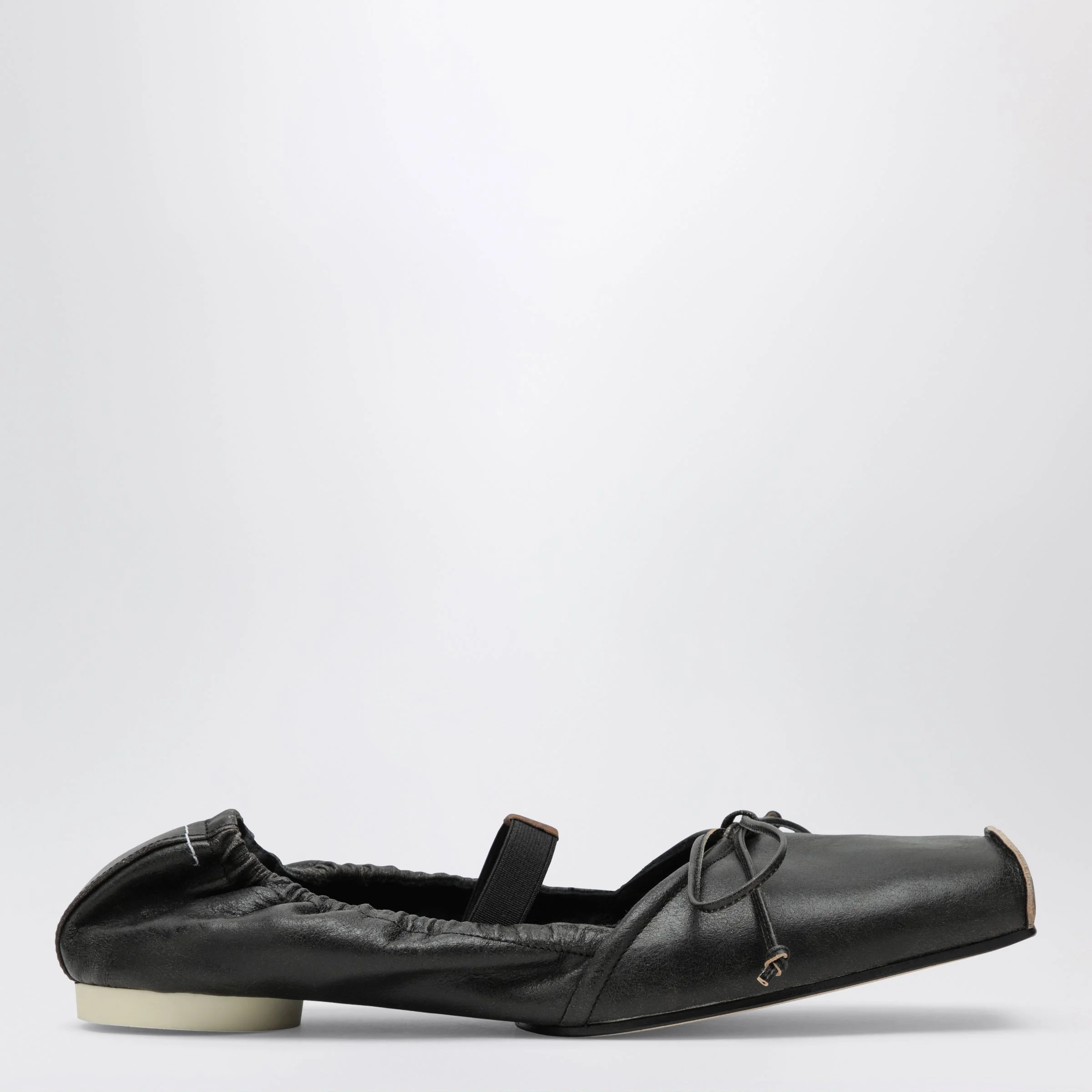 Square-toe ballerinas in leather by MM6• Color: Brown with vintage effect• Decorative bow on the upper• Elastic strap with MM6 numeric graphic• Finish with natural variations for a worn everyday look• White stitching at the back