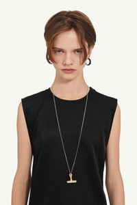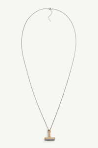 MM6's brass necklace features a pendant with a stamp detailed by the brand’s engraved numeric signature at the bottom. Product Details Item ID SM7UU0059P6620964 Body: 50% Brass, 50% resin Logo stamp pendant necklace One size Adjustable length Embossed MM6 numeric signature at the bottom Made in Italy The item comes in a white zipped bag
