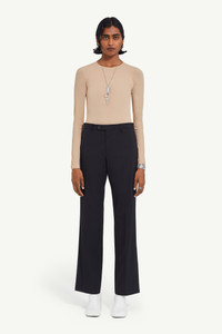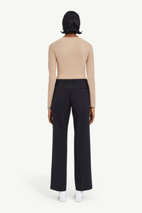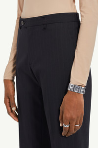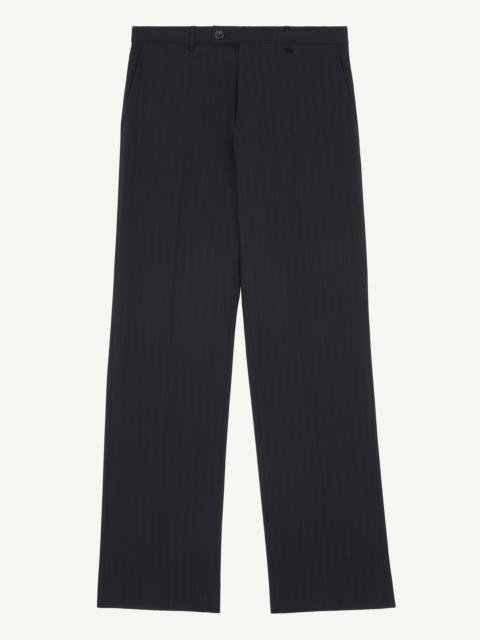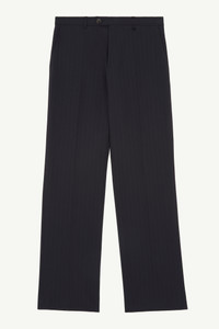 Suit trousers cut from pinstripe wool. The style presents all the classic codes of tailoring with front and back darts, a zip closure, a straight silhouette and a rear flat pocket. The discreet yet distinct signature, a horizontal line of white stitches, is found on the back. Product Details Item ID S52KA0439S52200003F
