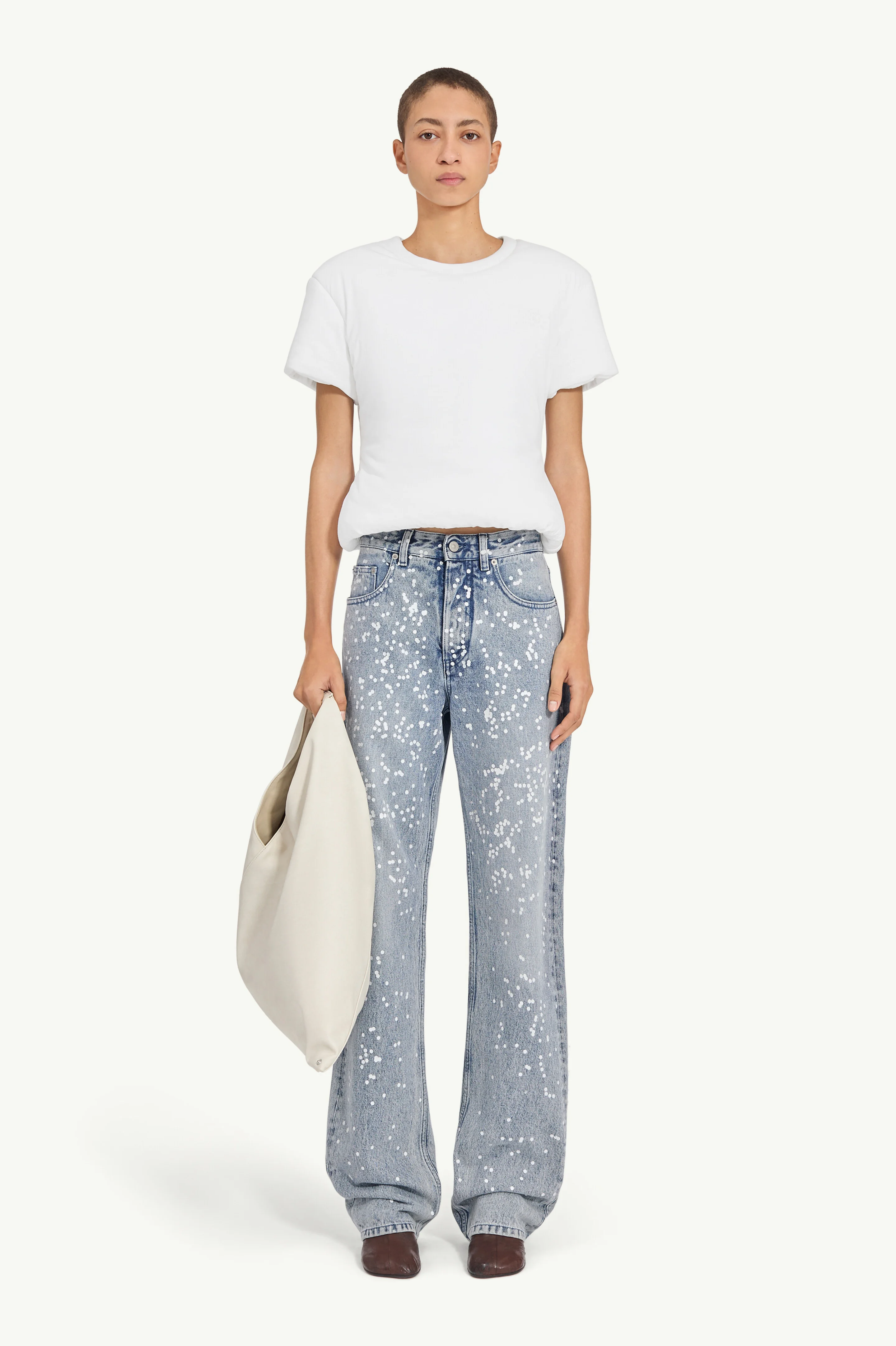 These straight-leg jeans feature a trompe l’oeil interpretation of confetti, drawn from the Martin Margiela Summer 2009 archive. The relaxed silhouette and washed finish offer contrast to the graphic, all-over motif. Finished with the MM6 numeric artwork to the back pocket. Product Details Item ID S62LB0207M30018968 Primary fabric: 100% Cotton Straight-leg denim jeans Five-pocket construction Trompe l’oeil confetti print MM6 numeric artwork on back pocket Made in Italy Model is 180 cm tall and wears a size 28.
