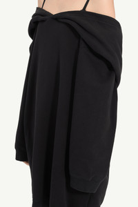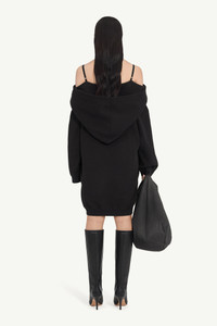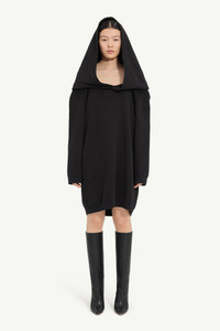 A fusion of comfort and experimental tailoring, this sweatshirt dress transforms with movement. The voluminous hood doubles as an off-shoulder neckline, revealing adjustable internal straps for dynamic styling. MM6’s signature white stitch line completes the look, a quiet nod to its deconstructed ethos. Product Details Item ID S52DD0074M25014900 Primary fabric: 100% Cotton Midi dress with oversized sweatshirt design Wide, folded-over neckline Thin adjustable shoulder straps Loose sleeves with ribbed cuffs Ribbed hemline with slight high-low cut Hoodie-style back with oversized hood Minimal stitching on edges White stitch line at the back Made in Italy Model is 179 cm tall and wears a size M.