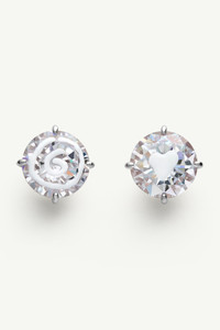These stud earrings challenge the permanence of luxury, using the Maison's iconic white paint to leave an ephemeral mark on a gemstone. The raw, hand-applied stroke recalls MM6's deconstructed aesthetic, where delicate precision and artistic disruption coexist. Product Details Item ID SM7VG0086P8372971 Primary Material: 100% Brass Application: 100% Zircon Pair of crystal stud earrings One spiral and one heart motif Set in sculpted prong mountings Polished post-back fastenings Made in Italy