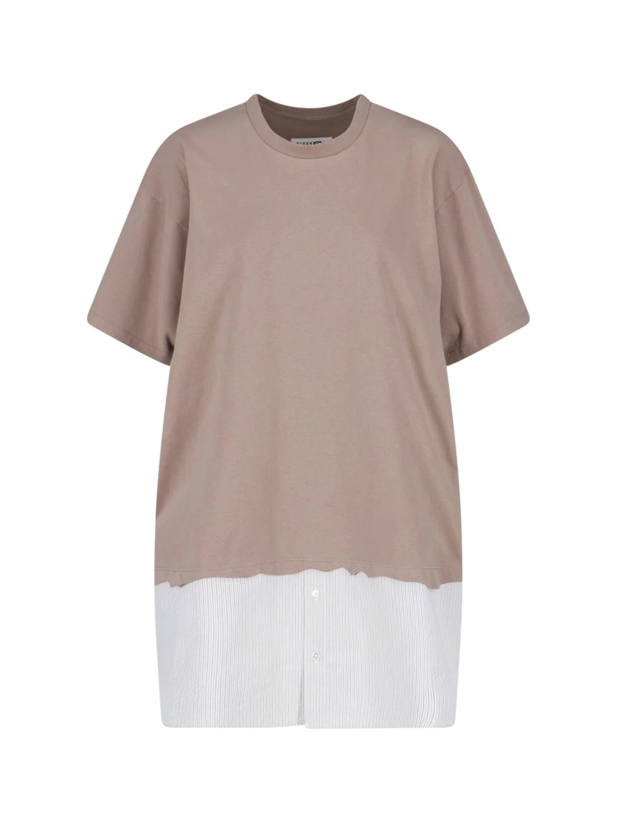 MAISON MARGIELA MM6 BROWN COTTON T-SHIRT DRESS WITH CREW NECK, SHORT SLEEVES, DROPPED SHOULDERS, FRONT BUTTONS, STRIPED DETAILS, BACK STITCHING, CURVED HEM. PRODUCT INFO PRODUCT CODE S52DA0079 M20050115 COMPOSITION: 100% COTTON SIZE AND FIT: OVERSIZED FIT MADE IN: ITALY