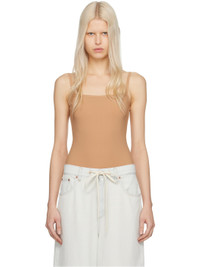 Stretch nylon jersey bodysuit. · Square neck · Press-stud fastening at base · Elasticized spaghetti straps · Signature white stitching at back · Logo printed at back · Partial mesh lining Supplier color: Camel 78% polyamide, 22% elastane. Made in Italy 241188F358001