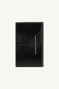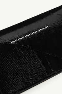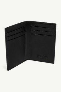 Crafted in glossy faux leather with a taped-effect finish, the exterior mimics the look of archival packaging – turning surface into statement. Inside, six card slots and tonal numeric artwork offer structure and functionality, while the white stitch line at the back underscores the Maison’s identity. Product Details Item ID SA6UI0033P8596T8013 Primary material: 100% Polyurethane Secondary material: 100% Polyurethane Lining: 100% Viscose Bi-fold wallet in glossy faux leather with taped-effect exterior Six internal card slots Debossed numeric signature inside White stitch line at the back Made in Italy