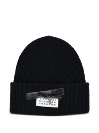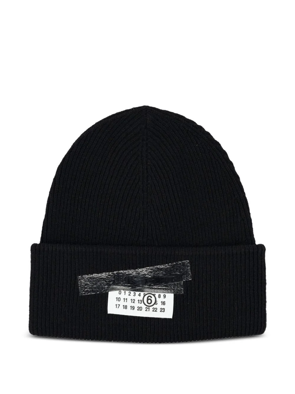 ribbed tape cotton beanie Highlights - Black - Ribbed texture - Applique - Number detail - Tape detail - Cotton Made in Italy Composition Cotton 100% Washing instructions Read Manufacturer Guidelines