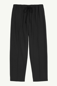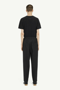 Crafted from wool, MM6’s trousers are shaped to tapered legs and fitted with central pleats and drawstring closure. The brand’s discreet yet distinct signature, a horizontal line of white stitches, is also found on the back of the garment. Product Details Item ID SH0KA0007S78357900 Composition: 55% polyester, 45% wool Pocket lining: 100% cotton Tailoring wool trousers Tapered leg Central pleats Drawstring closure White stitch line at the back Made in Italy Model is 189 cm tall and wears a size 48.