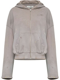 numbers-print hoodie Highlights - Medium grey - Front zip fastening - Two front pouch pockets - Classic hood - Paint splatter detail Made in Italy Composition Cotton 66%, Polyester 34%