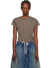 Semi-sheer wool jersey T-shirt. · Rib-knit crewneck · Logo printed at front · White stitching at back collar Supplier color: Taupe 100% wool. Made in Italy 252188F110018