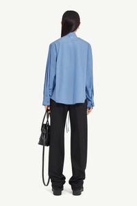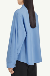 Cotton poplin shirt with mother of pearl front button closure and cuffs. The wide-sleeved shape disrupts the classic design. MM6’s discreet yet distinct signature, a horizontal line of white stitches, is found on the back of the shirt. Product Details Item ID S62DT0022S47294471 Composition: 100% cotton Shirt in cotton poplin Wide sleeves Mother of pearl button closure Buttoned cuffs White stitch line at the back Made in Italy