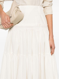tiered midi skirt Highlights - White - Concealed rear zip fastening - Belt loops - Flared Made in Italy Composition Cotton 100% SIZE & FIT Model measurements Height 5 ft 9 in(1.76 m) Bust/Chest 31.88 in(81 cm) Hips 35.43 in(90 cm) Waist 24.8 in(63 cm) FittingInformation This maxi-length skirt is intended to be worn high on the waist Particularly long in length; consider your own measurements Made from a midweight non-stretch fabric Washing instructions Dry Clean Only