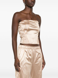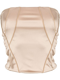 Track satin bustier top Highlights - Gold-tone - Satin finish - Piped-trim detailing - Bustier-style neckline - Concealed rear zip fastening - Sleeveless - Strapless - Straight hem - Cropped Composition Lining: Polyamide 100% Outer: Polyester 97%, Elastane 3% SIZE & FIT Model measurements Height 5 ft 9 in(1.76 m) Bust/Chest 32.3 in(82 cm) Hips 34.6 in(88 cm) Waist 23.6 in(60 cm) FittingInformation Designed for a close fit throughout Made from a midweight stretch fabric, this piece offers elasticity and flexibility when worn This piece fits true to size – take your usual size