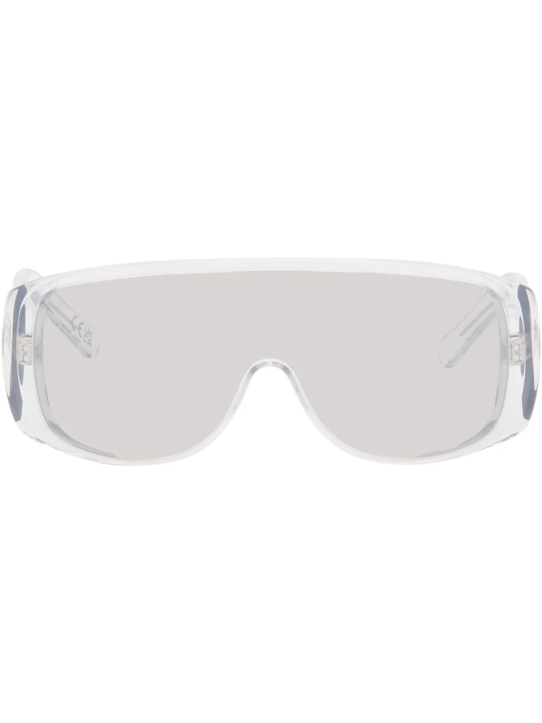 Shield-style transparent acetate-frame sunglasses. · Handcrafted · Mirrored gray lens · Integrated nose pads · Logo engraved at temples · Core wires · Includes pouch · Size: 69.06 135 Supplier color: White Acetate. Made in Italy 261188F005015