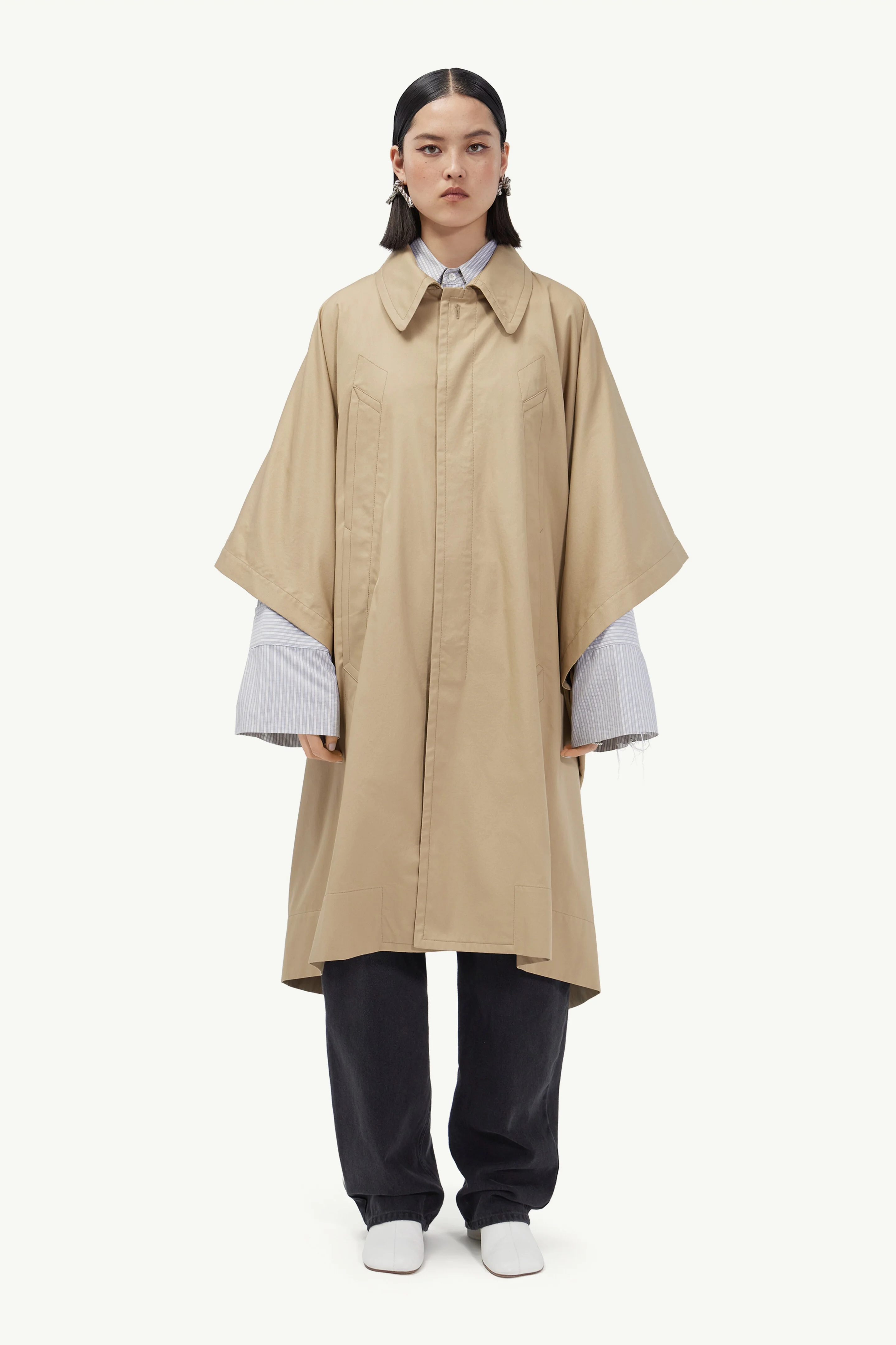 Trench coat cut from cotton gabardine. The garment pays tribute to the Maison’s subversive nature with oversized flap pockets, collar and angel sleeve cuffs. MM6’s discreet yet distinct signature, a horizontal white stich line, is present on the back of the coat. Product Details Item ID S52AH0055S52532114 Model is 5'10" tall and wears size 40.