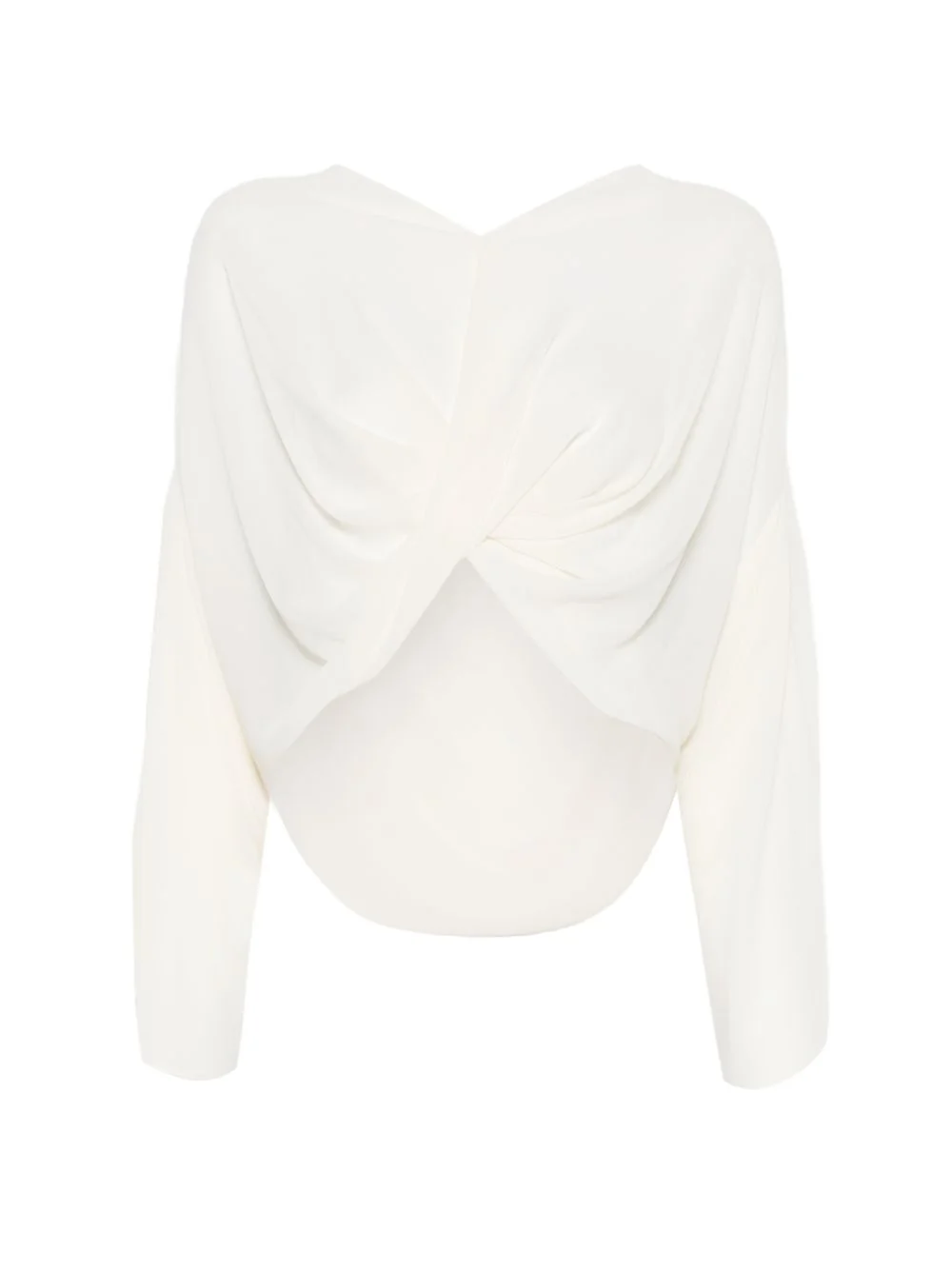 twist-detail long-sleeve top Highlights - Off-white - Twist detail - Long sleeves - V-neck - Cropped style - Sheer finish Made in Italy Composition Polyester 100% Washing instructions Dry Clean Only