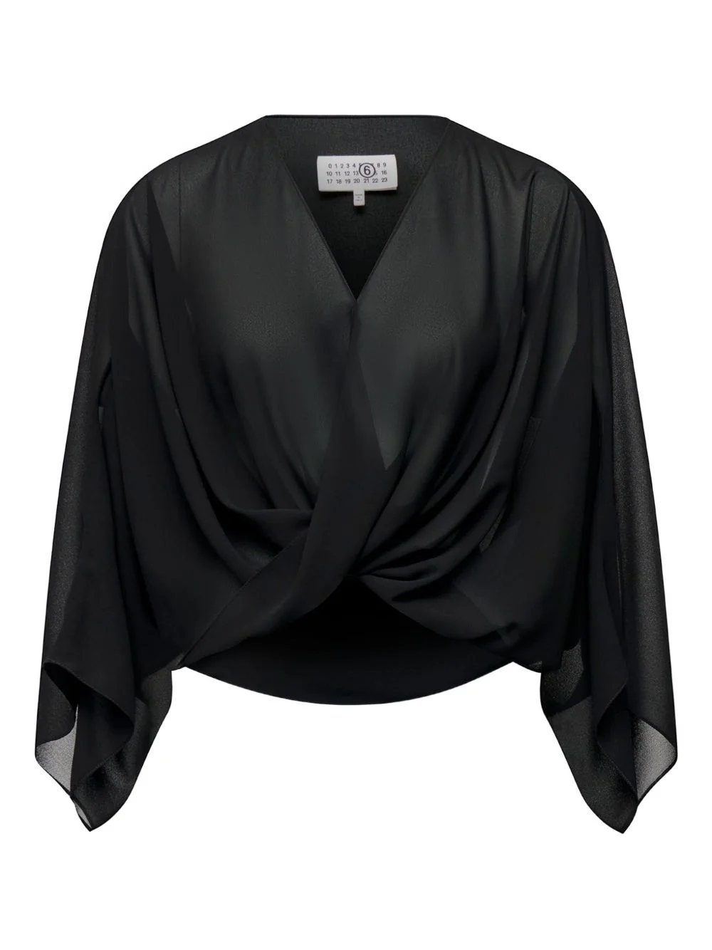 twisted-front long-sleeve blouse Highlights - Black - V-neck - Long sleeve - Twisted front Made in Italy Composition Polyester 100% Washing instructions Read Manufacturer Guidelines