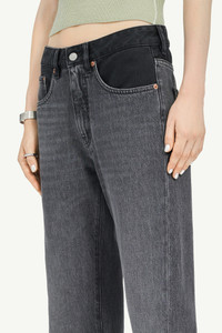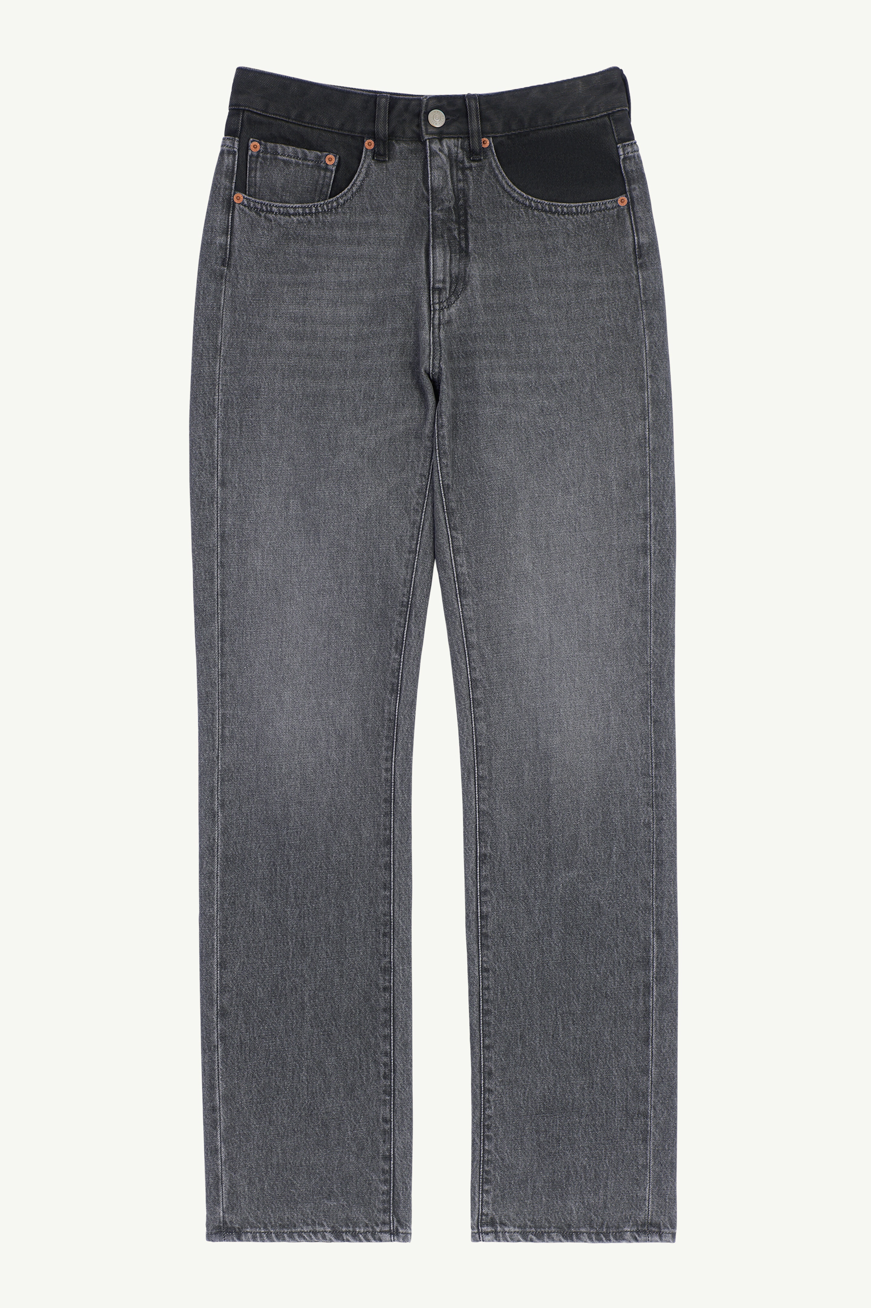 MM6’s two-tone five-pocket denim trousers are a perennial classic with an edge. Combining a straight-leg silhouette with a dark wash, these trousers also feature button closure and belt loops. The brand’s discreet yet distinct signature, a horizontal line of white stitches, is found on the back of the garment, along with the numeric signature jacron label. Product Details Item ID S52LA0224STZ123961 Composition: 100% cotton Pocket lining: 100% cotton Two-tone 5-pocket denim trousers Straight leg Button closure Belt loops White stitch line and MM6 numeric signature jacron label at the back Made in Italy Model is 178 cm tall and wears a size 28.