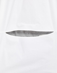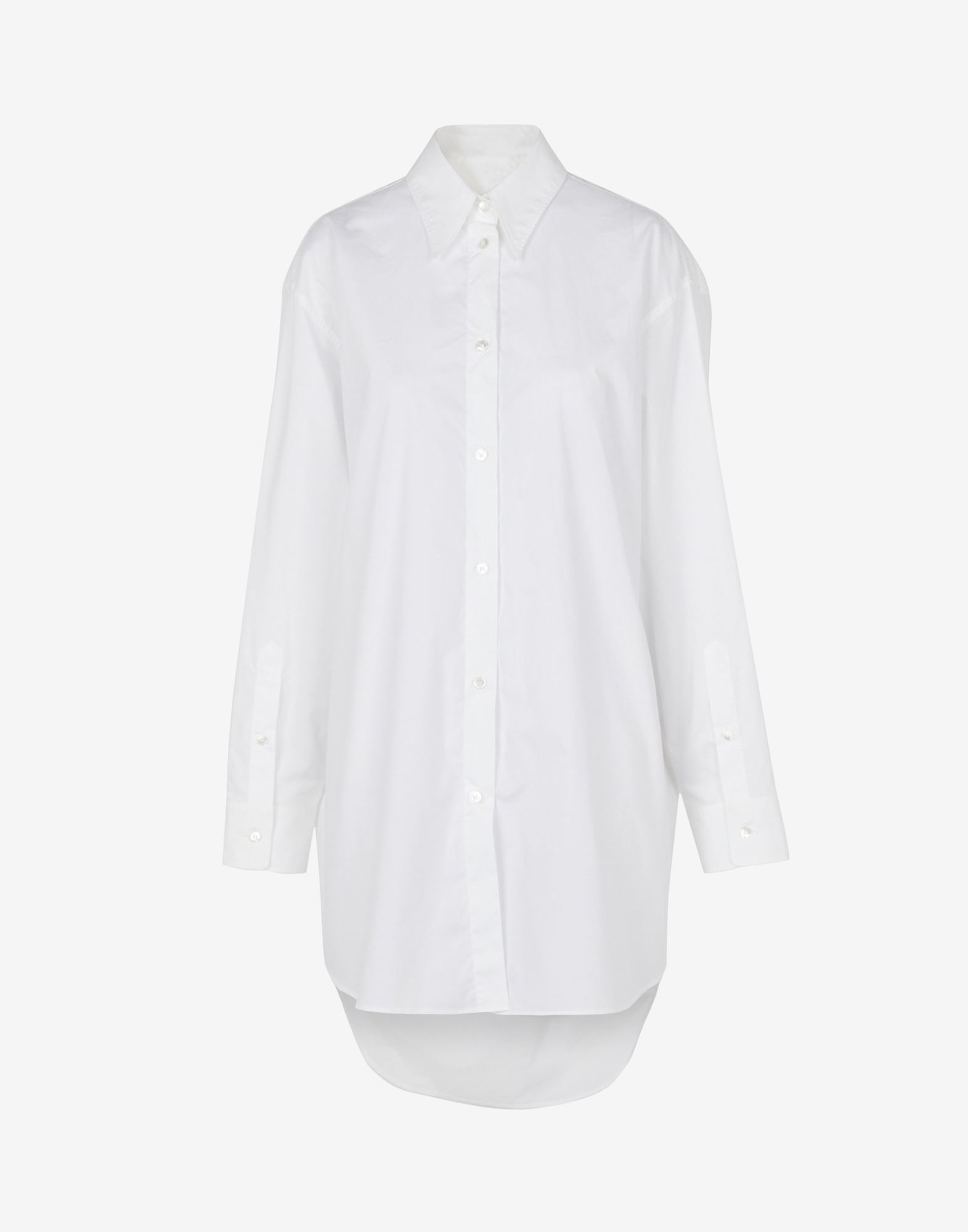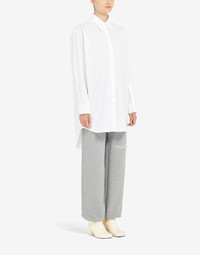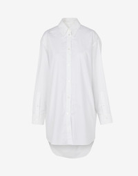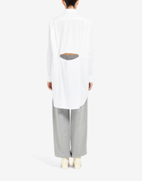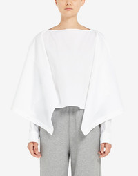 Cotton poplin shirt that has been reworked to display MM6's insubordinate spirit. The collar appears at the bottom on the back, with a new boat neckline and angel sleeves. Item details 100% Cotton Poplin Long sleeves Button closing