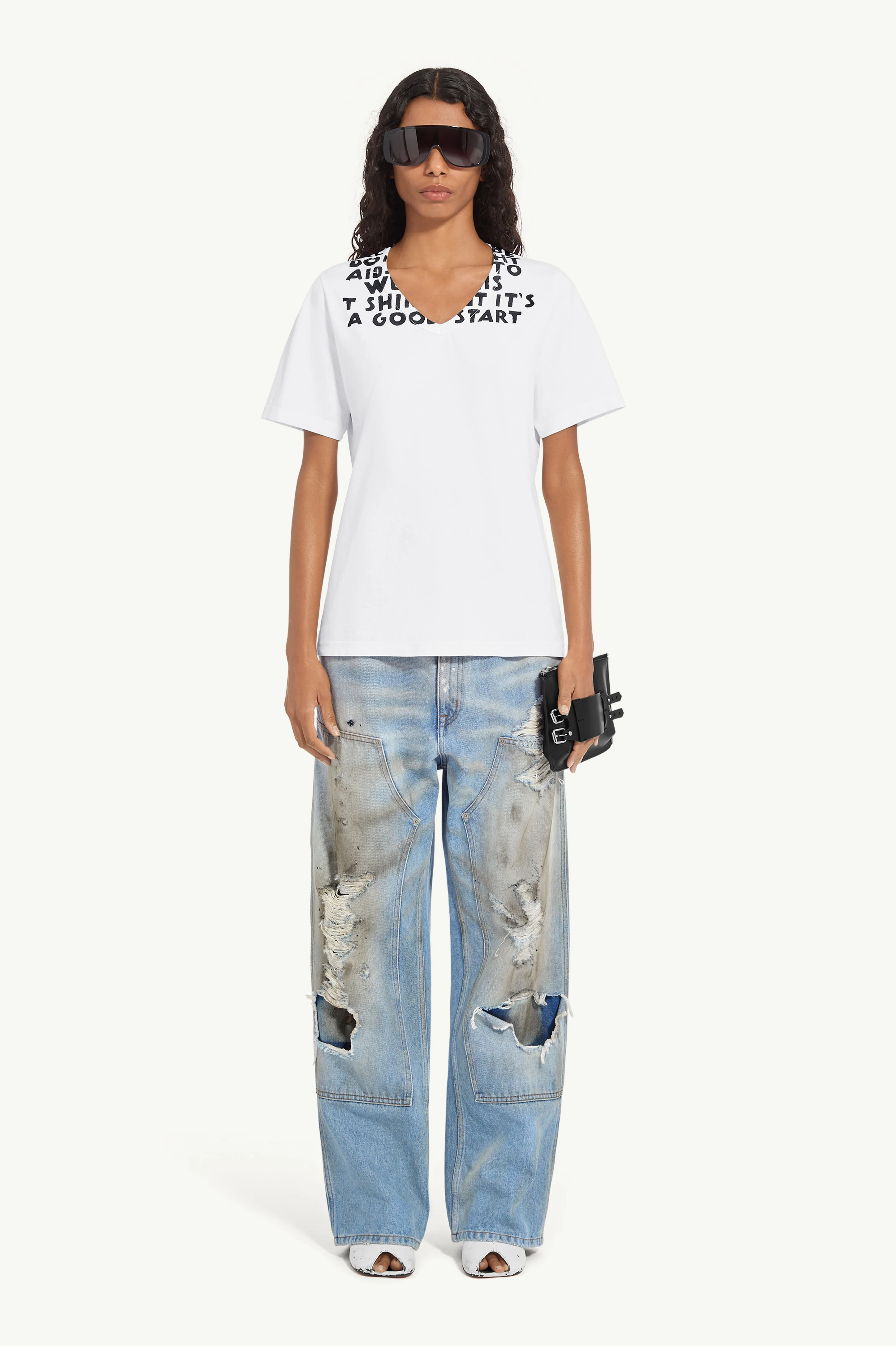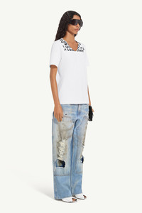 This V-neck T-shirt reintroduces the Maison’s archival SIDA print from Autumn/Winter 1993, renewing its call for awareness in the ongoing fight against HIV and AIDS. With a portion of profits supporting AIDES, its straightforward design and unmistakable message serve as a quiet yet impactful statement. Product Details Item ID S62GD0203M20108100 Primary Fabric: 100% Cotton Heavy cotton jersey T-shirt V-neck Short sleeves Front AIDS charity print White stitch line at the back Regular fit Made in Italy