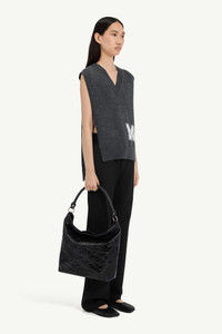 This sleeveless knit blends collegiate spirit with MM6’s subversive aesthetic. A deep V-neck is framed by ribbed trims, while an oversized ‘M’ patch at the hem reinforces its varsity code. Crafted in a wool blend, it offers both structure and comfort. Finished with the Maison's signature white stitch line. Product Details Item ID S52TH0058M13206855M Primary fabric: 50% virgin wool 50% acrylic Gauge 5 Varsity M patch detail on front Sleeveless design V-neck White stitch line at the back Made in Italy
