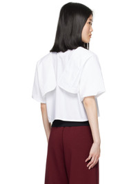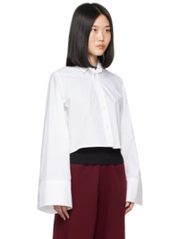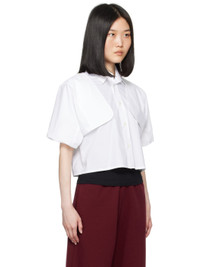 Cotton poplin shirt. · Spread collar · Button closure · Cropped hem · Button fastening at shoulders for alternate styling · Three-button barrel cuffs · White stitching at back collar Supplier color: White 100% cotton. Made in Italy 242188F109015
