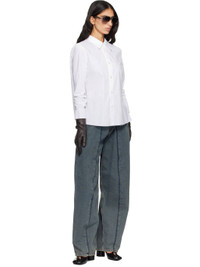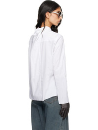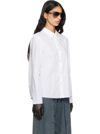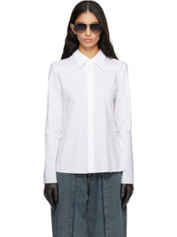 Cotton poplin shirt. · Spread collar · Button closure · Raw edge at shirttail hem and cuffs · White stitching at back yoke · Expansion panel at back with button tab at back collar Supplier color: White 100% cotton. Made in Italy 252188F109012