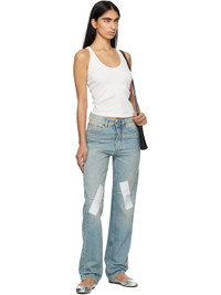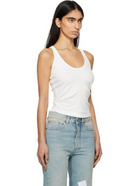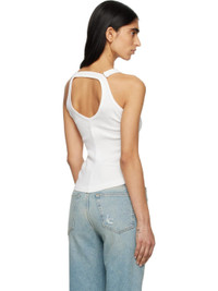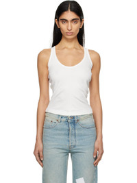 Stretch cotton ribbed jersey tank top. · Scoop neck · Central seam at front and back · Hook-eye fastening at shoulder straps · Cutout at back · White stitching and printed logo at back Supplier color: Off-white 98% cotton, 2% elastane. Made in Italy 251188F111001