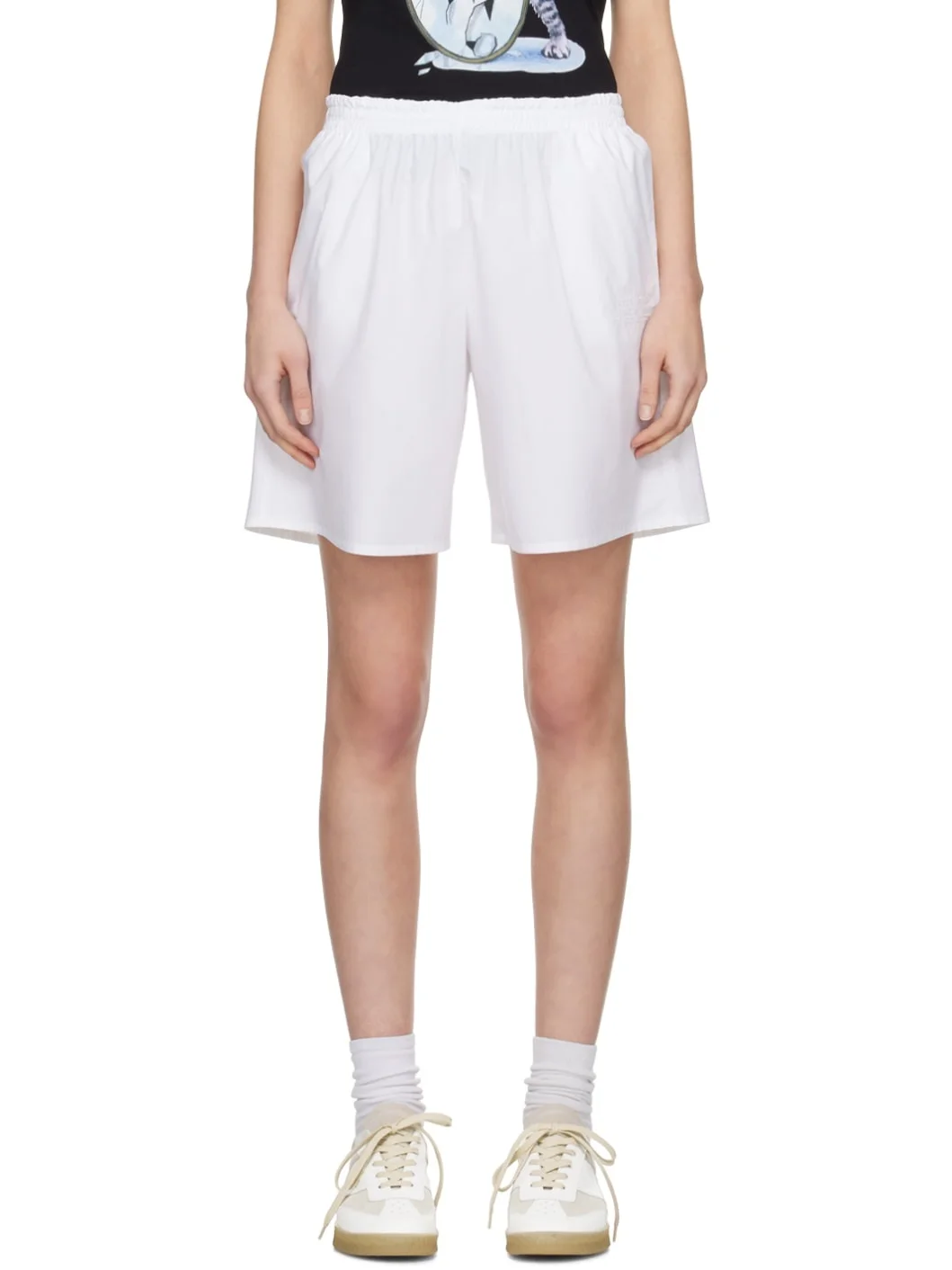 Cotton poplin shorts. · Concealed drawstring at elasticized waistband · Two-pocket styling · Logo embroidered at front pocket · Signature white stitching at back waistband Supplier color: White 100% cotton. Made in Italy 241188F088010