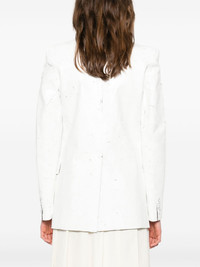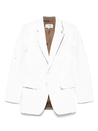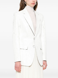 cracked-paint blazer Highlights - White - Front button fastening - Two side flap pockets - Central rear vent - Internal jetted pocket Made in Italy Composition Outer: Polyester 54%, Virgin Wool 44%, Elastane 2% Lining: Viscose 100% SIZE & FIT Model measurements Height 5 ft 10 in(1.79 m) Bust/Chest 35.43 in(90 cm) Hips 35.03 in(89 cm) Waist 25.19 in(64 cm) FittingInformation Designed for a slim fit that sits just away from the body offering a close yet comfortable fit The internal shoulder pads offer a structured shape Made from a midweight stretch fabric, this piece offers elasticity and flexibility when worn