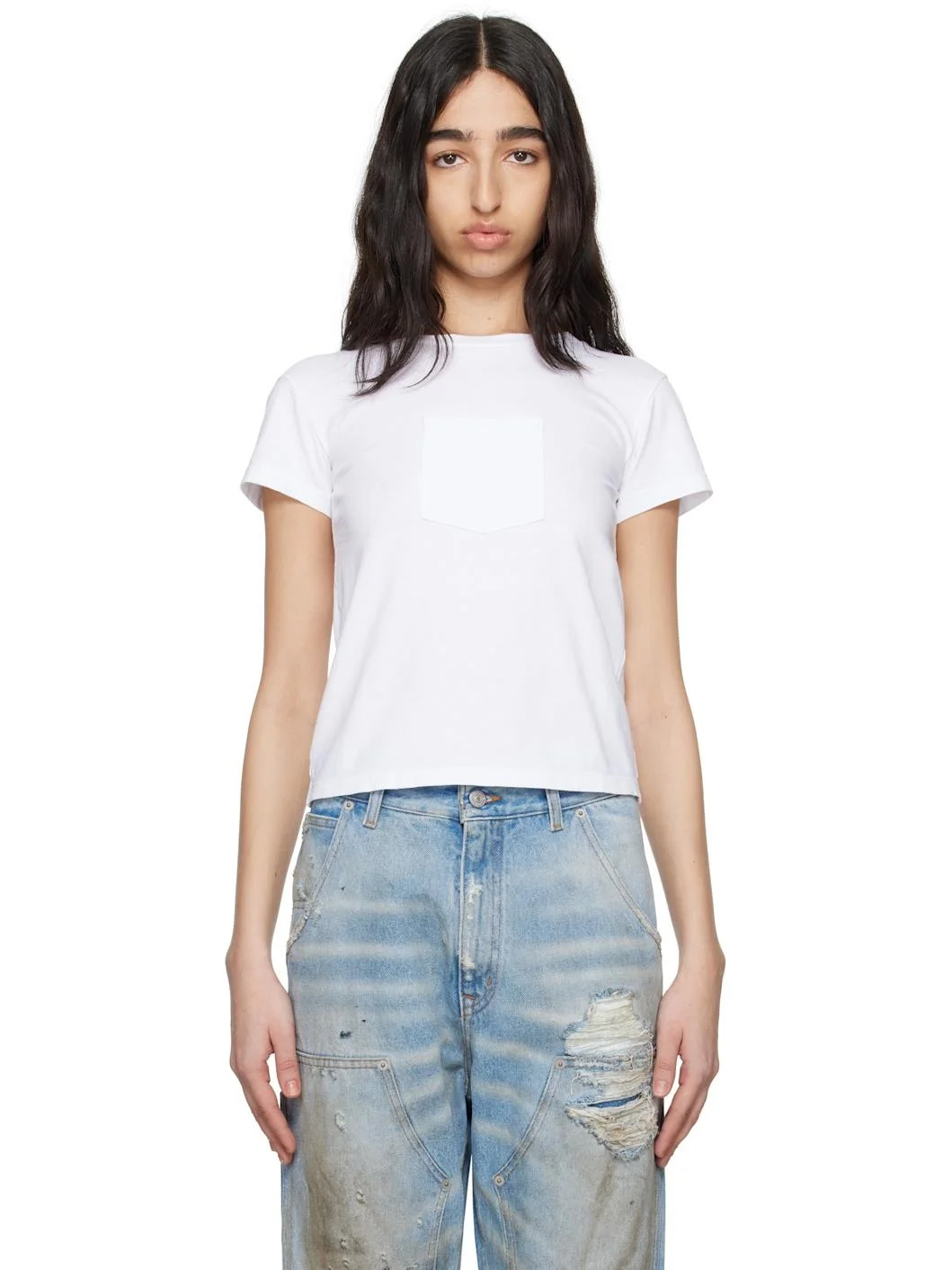 Cotton jersey T-shirt. · Rib-knit crewneck · Patch pocket at chest · White stitching at back collar Supplier color: White 100% cotton. Made in Italy 251188F110059