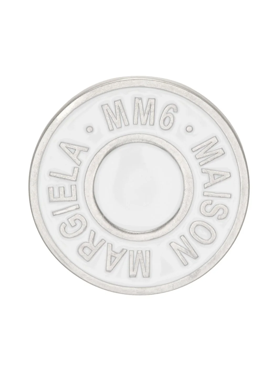 Pin in silver-tone brass. · Logo and white enamel at face · Post-stud fastening · D0.75" Supplier color: Palladio buratta Brass. Made in Italy 242188F021002