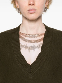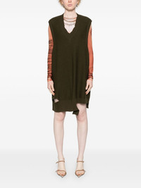 sleeveless knitted minidress Highlights - Khaki - Virgin wool blend - Knitted construction - Exposed-seam detailing - Ribbed v-neck - Sleeveless - Ribbed hem - Distressed finish - Thigh-length Made in Italy Composition Acrylic 50%, Virgin Wool 50% SIZE & FIT Model measurements Height 5 ft 9 in(1.75 m) Bust/Chest 34.64 in(88 cm) Hips 36.61 in(93 cm) Waist 26.37 in(67 cm) FittingInformation Designed to be unstructured, offering a loose fit throughout Made with a midweight knit, this piece offers some stretch This piece fits true to size – take your usual size