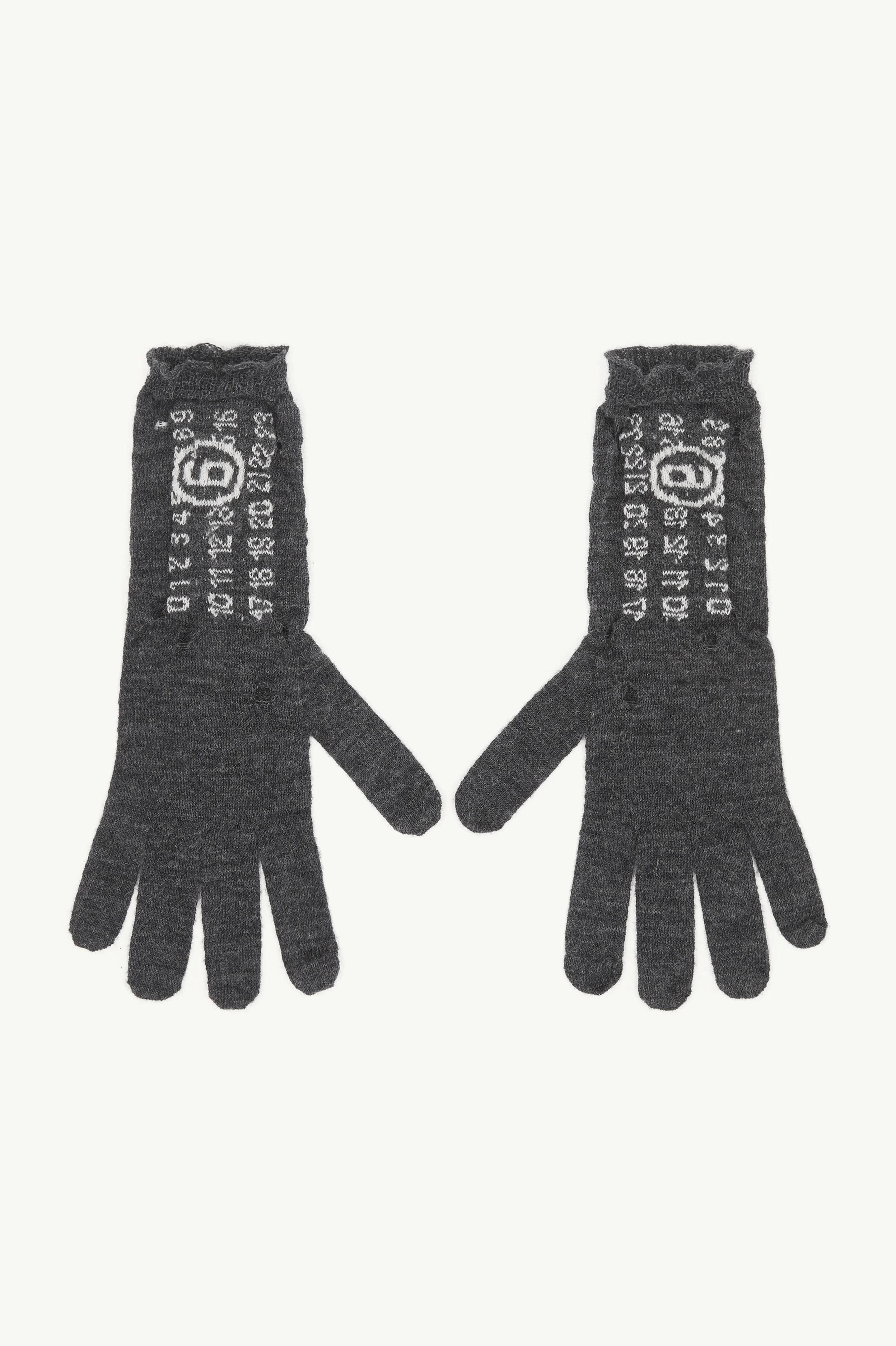 Emblazoned with the numeric emblem, these wool gloves are constructed with visible distressing – a quiet disruption to a cold-weather staple. The frayed finish and textural irregularities reflect the brand’s instinct to question convention, even in the smallest details. Product Details Item ID S52TS0043M13135855 Primary Fabric: 100% Virgin Wool Ribbed knit gloves with distressed detailing Numeric signature at the cuffs Straight cuffs Made in Italy