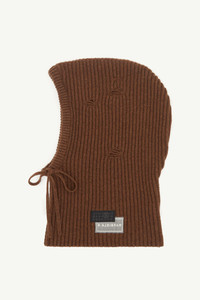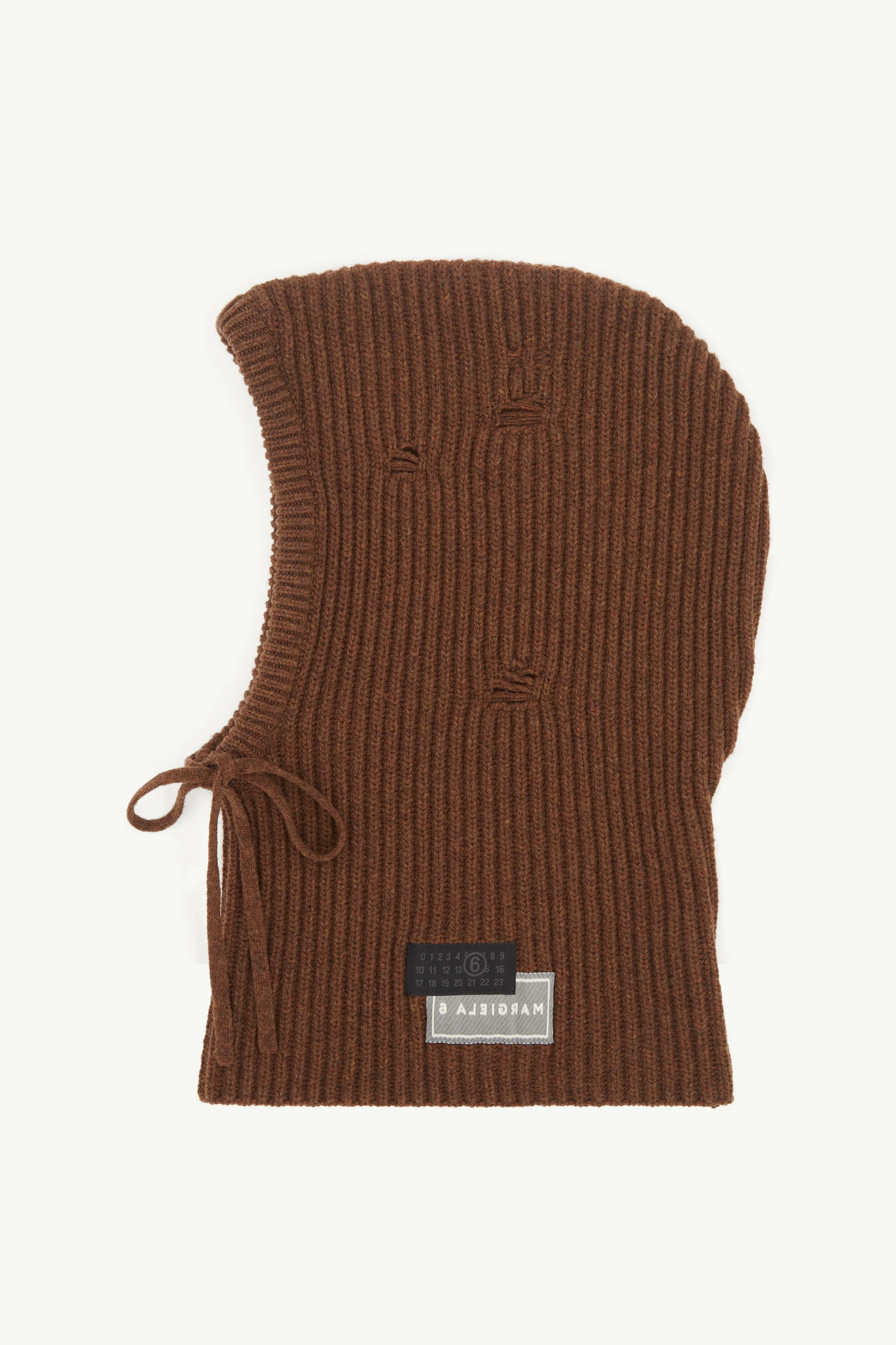 With its sculptural form and deliberate imperfections, this wool hood gives utility an abstract twist. The ribbed knit structure softens around the face, while distressed slits suggest something already lived-in. At the neck, an overlapped numeric label reframes the notion of a logo. Product Details Item ID S52TB0008M13138142M Primary Fabric: 80% Wool, 20% Polyamide-Nylon Drawstring hood with an extended neckline Ribbed knit construction with distressing Dual artwork patch at the collar Made in Italy
