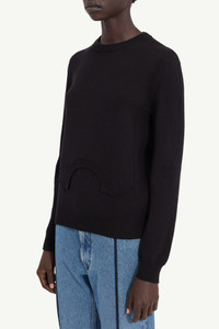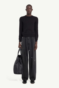 This sweater challenges traditional knitwear with its innovative flipped panel – where a precise section of the garment is cut and reversed, exposing its inner architecture. The structured knit retains a clean, refined shape, while MM6’s signature white stitch at the back offers a quiet yet deliberate nod to the house’s deconstructed DNA. Product Details Item ID S52HL0044M13139900 Primary fabric: 100% virgin wool Long-sleeve jumper in virgin wool Crew neckline Ribbed trims Inverted overlay panel at the front White stitch line at the back Model 1 is 188 cm tall, model 2 is 180 cm tall and wears a size M.