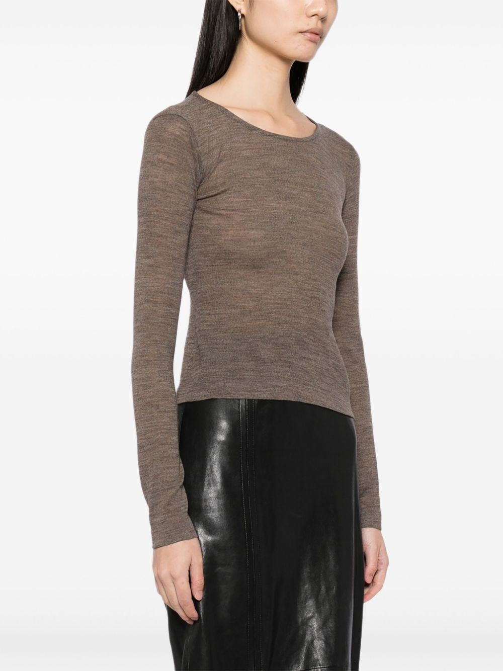wool T-shirt Highlights - Coffee brown - Crew neck - Long sleeves Made in Italy Composition Wool 100% SIZE & FIT Model measurements Height 5 ft 10 in(1.77 m) Bust/Chest 31.49 in(80 cm) Hips 35.43 in(90 cm) Waist 25.19 in(64 cm) FittingInformation Designed for a slim fit that sits just away from the body offering a close yet comfortable fit Made with a lightweight knit, this piece offers some stretch