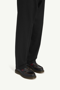 Blending the timeless moccasin silhouette with Dr. Martens utilitarian edge, these shoes combine black and oxblood Vintage Smooth leather for a bold contrast. Crafted with a deconstructivist approach, they feature the iconic Dr. Martens sole and signature yellow stitching, embodying the progressive spirit of both brands. Product Details Item ID S66WR0029P8031H6077 Upper: 100% calf leather Constrast: 100% calf leather Lining: 50% nylon, 50% polyurethane Inside: 100% calf leather Sole: 100% polyvinylchloride Mocassin in black vintage leather and oxblood vintage smooth leather Dr. Martens sole