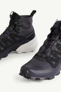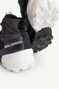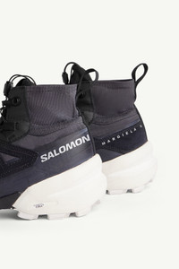 MM6 Maison Margiela x Salomon Cross High sneakers fuse a performance sensibility witha directional aesthetic. With a redesigned lug and block heel, the defining design motif is its high-top silhouette, which echoes the Maison’s signature ‘6’ heel boot for a versatile, street-ready feel. Maximal stability can be expected with Salomon’s Sensifit quicklace technology and the snug suede and ripstop upper.The MM6 x Salomon collaboration speaks to the brands’ shared ethos of transitional design, first seen in the Maison’s Autumn/Winter 2022 show. Drawing inspiration from the everyday, the collection is a celebration of the unsung beauty of quotidian dressing; of the eclectic blur of clothes that pass us by on our city streets. Product Details Item ID S66WS0081P5132H9426