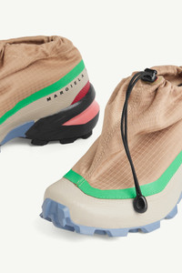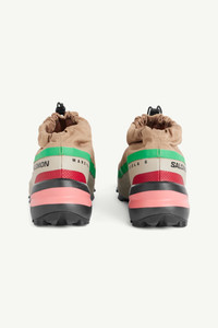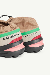 MM6 Maison Margiela x Salomon Cross Low sneakers illustrate the capsule's hybrid perspective, marrying a progressive aesthetic with performance-ready credentials. Features such as a reinterpreted lug– derived from Salomon’s signature Speedcross pattern – and an inner mesh slip-on shoe nod to trail running heritage. MM6’s unconventional yet casual design ethos is seen with bold hues and a built-in ripstop gaiter, resulting in a distinctly modern silhouette. The MM6 x Salomon collaboration speaks to the brands’ shared ethos of transitional design, first seen in the Maison’s Autumn/Winter 2022 show. Drawing inspiration from the everyday, the collection is a celebration of the unsung beauty of quotidian dressing; of the eclectic blur of clothes that pass us by on our city streets.