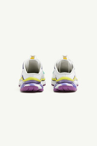 The MM6 x Salomon collaboration speaks to the brands’ shared ethos of transitional design, first seen in the Maison’s Autumn/Winter 2022 show. Drawing inspiration from the everyday, the collection is a celebration of the unsung beauty of quotidian dressing; of the eclectic blur of clothes that pass us by on our city streets. This season, the Salomon XT-4 is reworked into a mule, while maintaining the shoe’s core performance function and detailing. Product Details Item ID S59WS0222P6634HA241 Upper: 100% polyester Contrast: 100% polyurethane Lining: 100% polyester Inside: 100% polyester Sole: 100% rubber Lace-up mule sneakers in recycled polyester and rubber MM6 numeric signature and Salomon label on the side