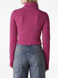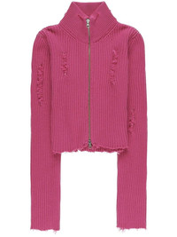 zip-up cropped cardigan Highlights - Dark pink - Cotton-wool blend - Ribbed knit - Knitted construction - Distressed finish - High neck - Front two-way zip fastening - Long sleeves - Straight hem - Cropped Made in Italy Composition Cotton 85%, Wool 15%