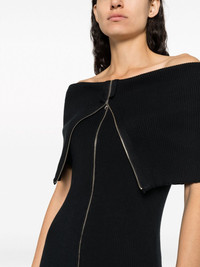 zip-up ribbed-knit maxi dress Highlights - Black - Cotton-wool blend - Ribbed knit - Bodycon design - Off-shoulder - Front two-way zip fastening - Short sleeves - Calf-length Imported Composition Cotton 85%, Wool 15% SIZE & FIT Model measurements Height 5 ft 10 in(1.79 m) Bust/Chest 33.07 in(84 cm) Hips 35.82 in(91 cm) Waist 24.01 in(61 cm) FittingInformation Designed for a close fit throughout Made with a midweight knit, this piece offers some stretch This piece fits true to size – take your usual size Washing instructions Dry Clean Only