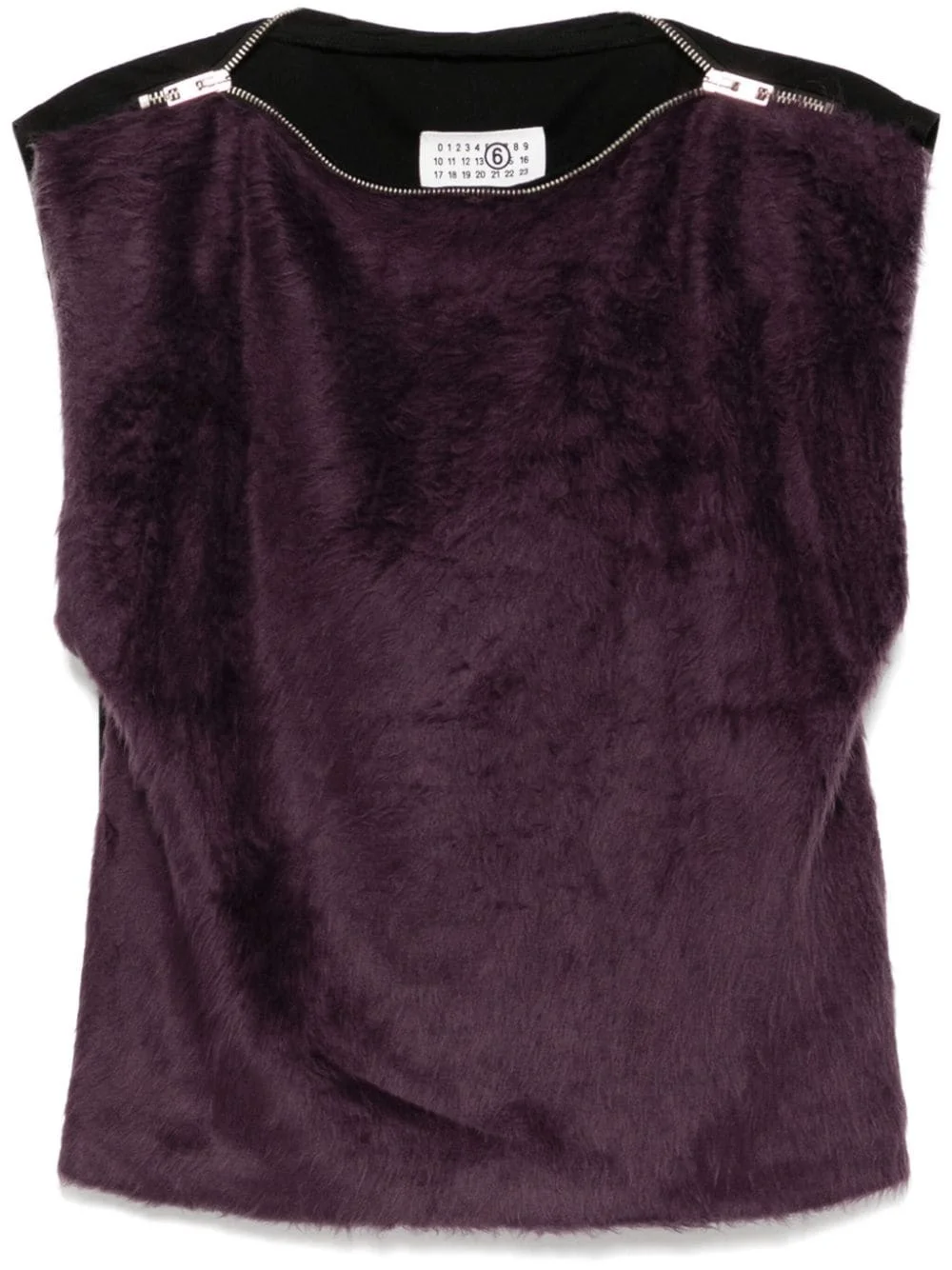 zipper detailing vest Highlights - Dark purple/black - Jersey texture - Faux-fur detailing - Zipper detailing - Sleeveless - Straight hem Made in Italy Composition Lining: Polyamide 100% Outer: Acrylic 96%, Elastane 4%