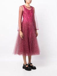 leopard-print tulle midi dress Highlights - Hot pink - All-over leopard print - Tulle overlay - Long sheer sleeves - Layered design - Round neck - Full skirt - Calf-length - Straight hem Made in United Kingdom Composition Inner: Viscose 100% Body: Nylon 100% SIZE & FIT Model measurements Height 5 ft 10 in(1.77 m) Bust/Chest 31.49 in(80 cm) Hips 35.43 in(90 cm) Waist 25.19 in(64 cm) FittingInformation Designed to be unstructured, offering a loose fit throughout The detachable slip sits just away from the body, offering a close yet comfortable fit Made from a midweight non-stretch fabric This piece fits true to size – take your usual size