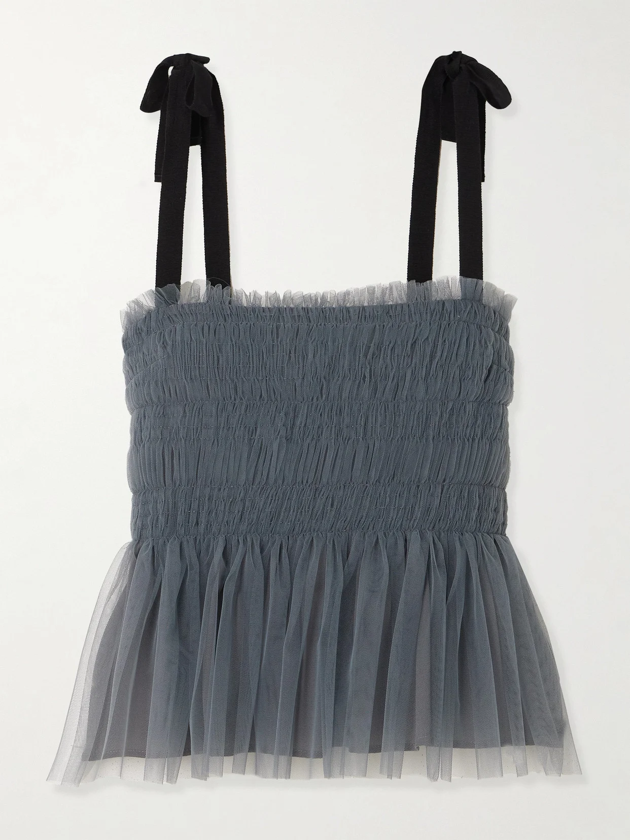 Lydia Shirred Grosgrain-trimmed Tulle Top