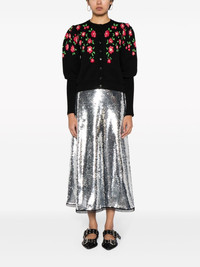 sequinned midi skirt Highlights - Silver-tone - Sequin embellishment - High-waisted - Flared - Mid-length - Full lining Made in United Kingdom Composition Trims: Polyester 100% Outer: Polyester 97%, Spandex/Elastane 3% Lining: Polyester 100% SIZE & FIT Model measurements Height 5 ft 10 in(1.77 m) Bust/Chest 31.49 in(80 cm) Hips 35.43 in(90 cm) Waist 25.19 in(64 cm) FittingInformation This midi-length skirt is intended to be worn high on the waist Made from a midweight stretch fabric, this piece offers elasticity and flexibility when worn This piece fits true to size – take your usual size Washing instructions Dry Clean Only