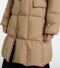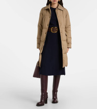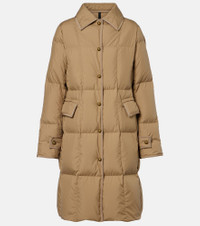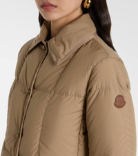 The Achard down coat from Moncler features a buttoned front, a classic collar, and a quilted design. Exclusively sourced from DIST-certified suppliers, all Moncler down is derived from farmed geese as a byproduct of the food industry. Product Details - Material: 100% polyester - Care instructions: hand wash - Made in Romania - Designer color name: 23F - Item color: beige - Lining: 100% polyester - Insert: 100% calf leather - Filling: 90% down, 10% feathers - Contains non-textile parts of animal origin - Closure: snap-buttoned front - Pockets: flap pockets - Item number: P01100879 Size & Fit - True to size - Designed for a loose fit - Non-stretchy fabric - The model seen in the picture is 178cm-5'10" and wearing a size 0